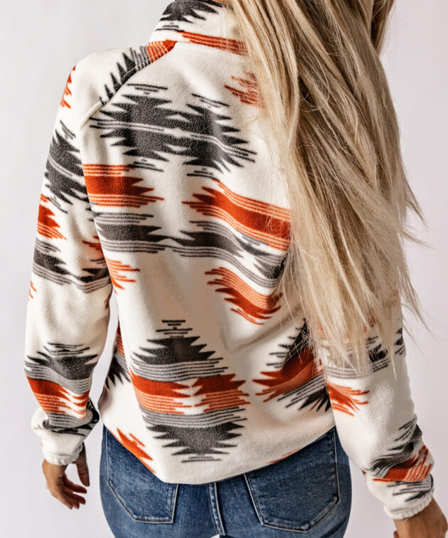 Gray Western Aztec Snap Buttoned Fleece Jacket