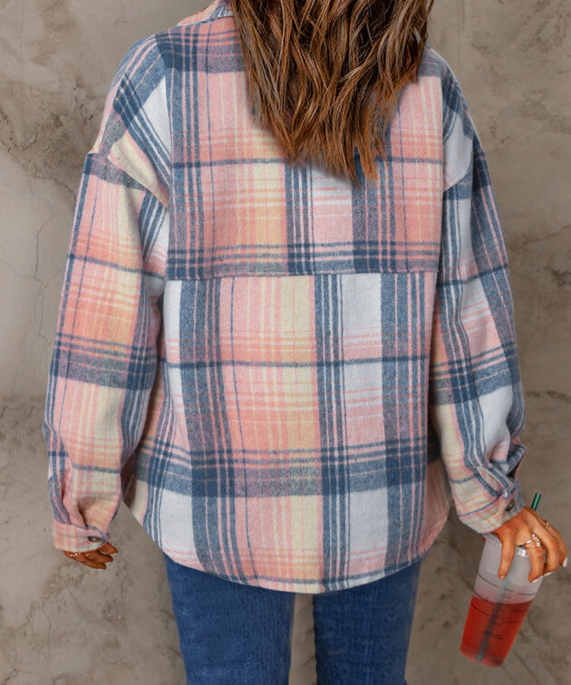 Pink Stripe Colorblock Patchwork Collared French Terry Knit Top