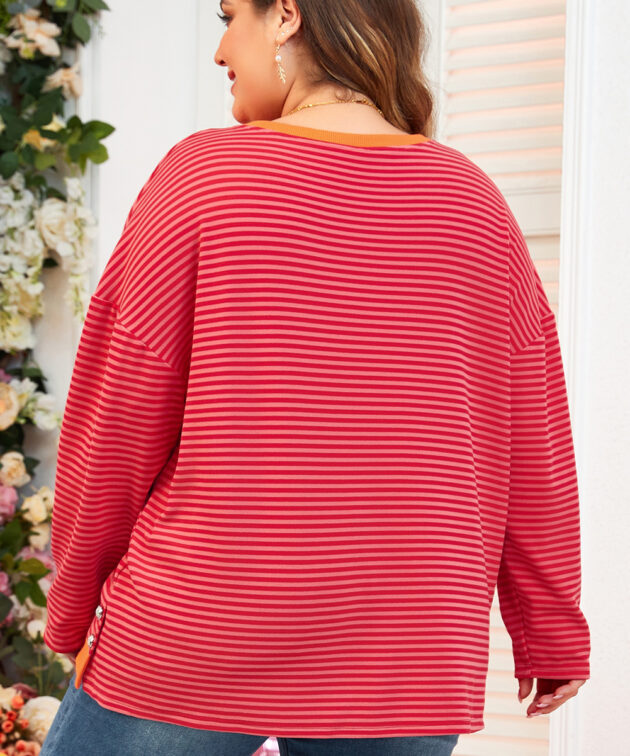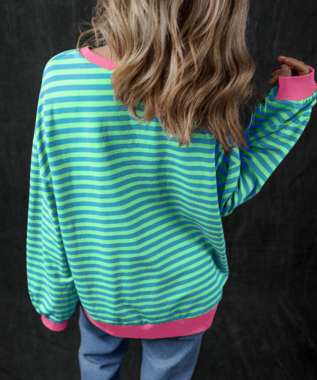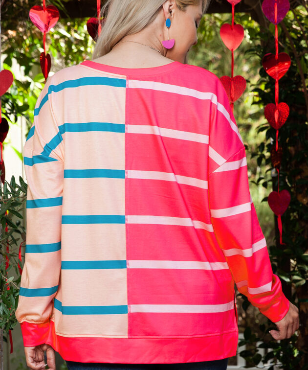 Pink Stripe Contrast Trim High Low Pullover Tunic Sweatshirt