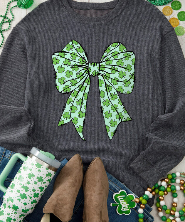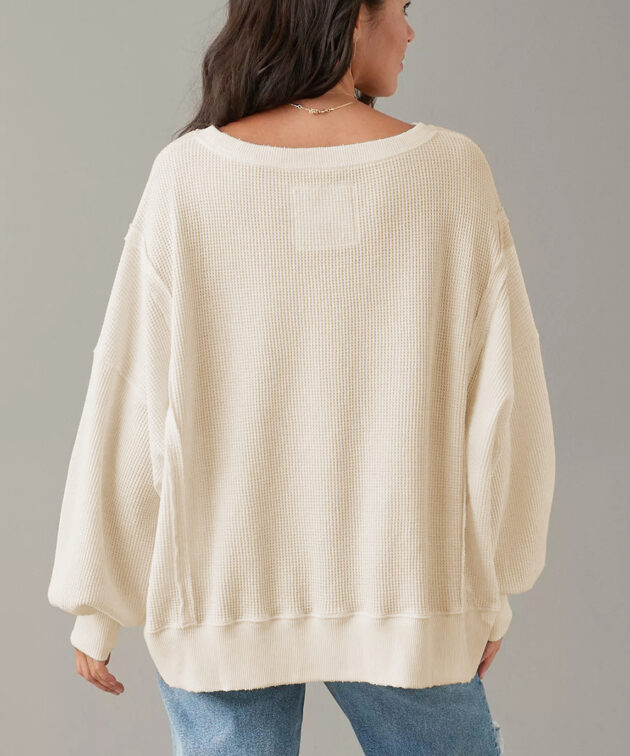 Parchment Embroidered Bow Lantern Sleeve Oversized Pullover Sweatshirt