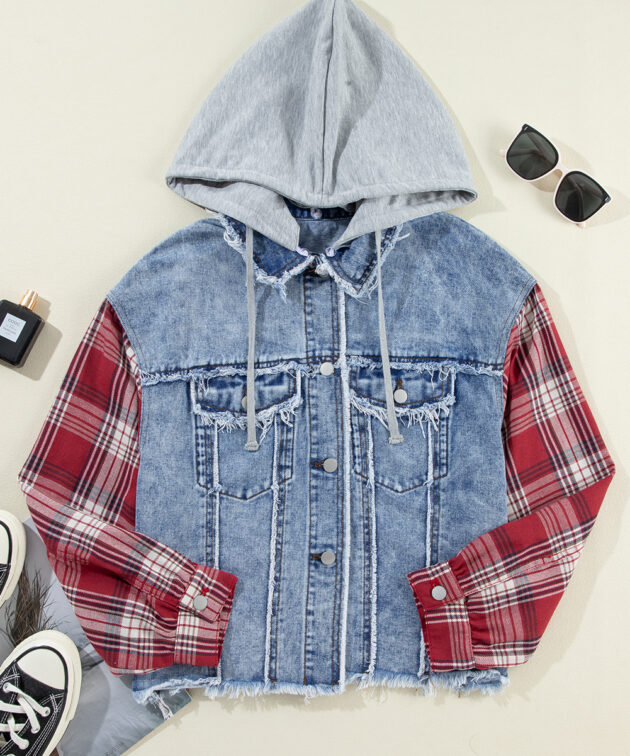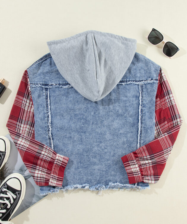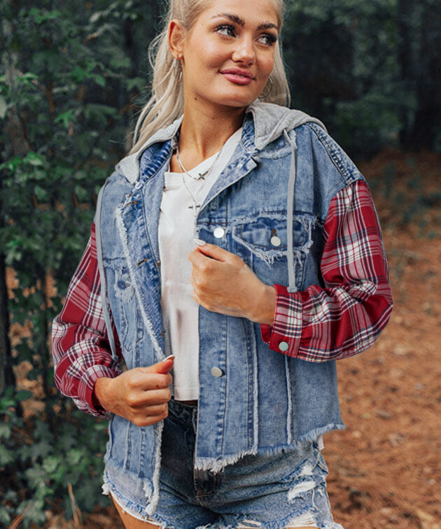 - Elevate your casual style with a trendy plaid patchwork design.