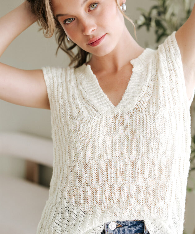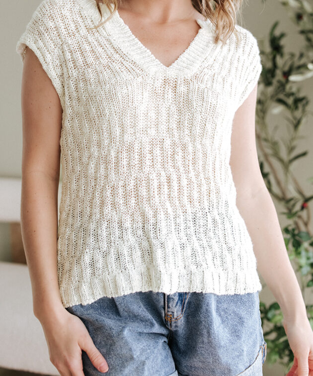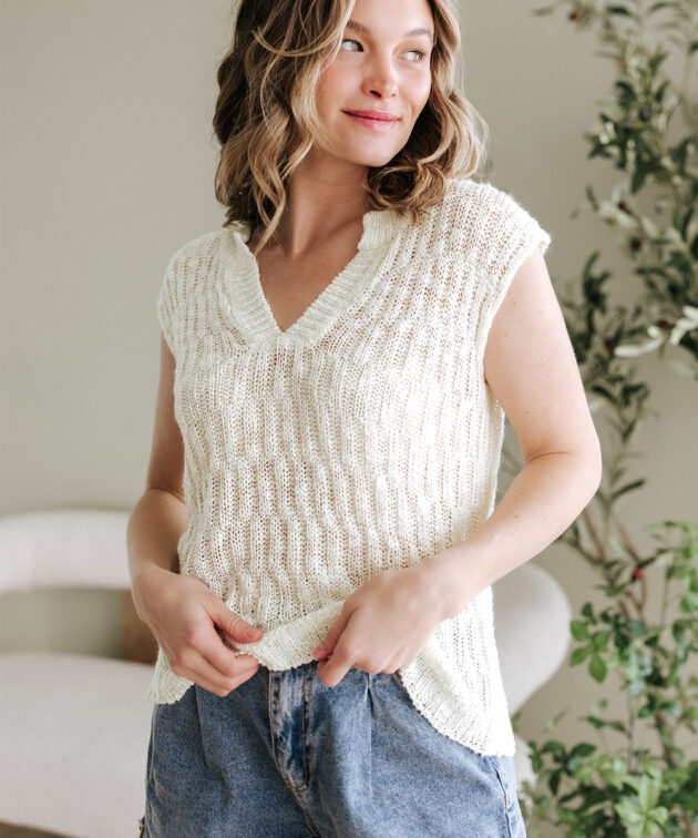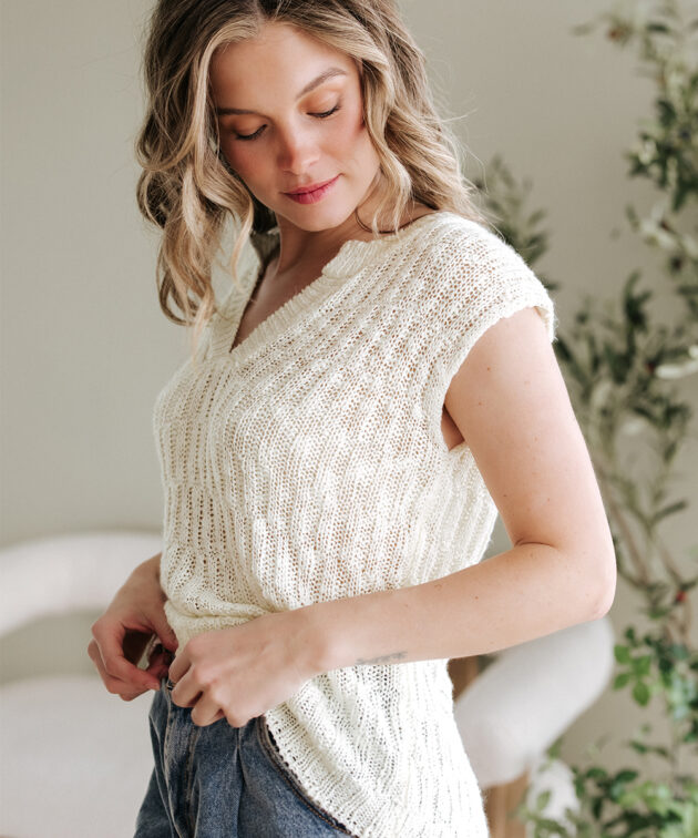 Beige Notched V Neck Short Sleeve Sweater