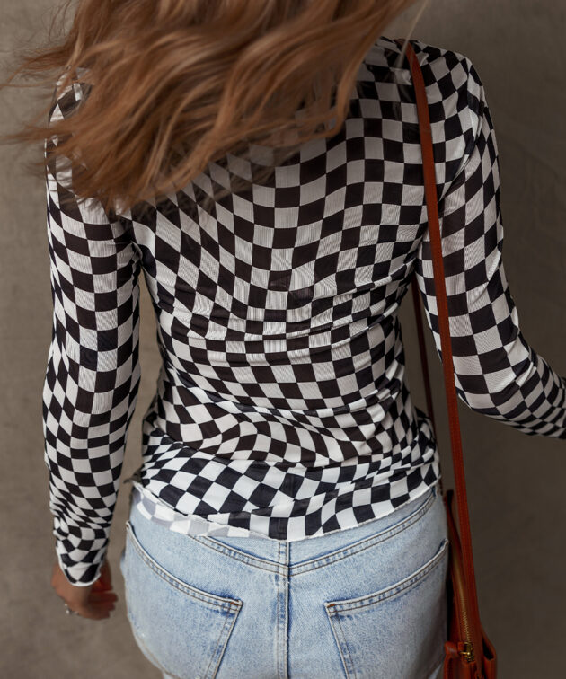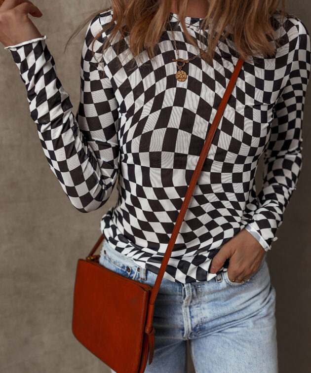 - This top features a classic checkered pattern that adds a timeless and versatile touch.