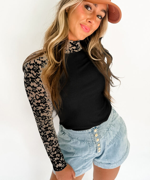 - This tightfitting top is fashionable and charming with floral lace patchwork.