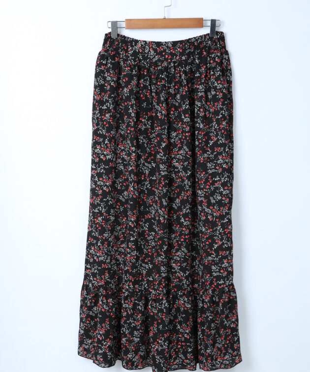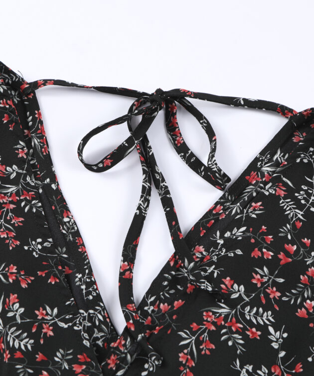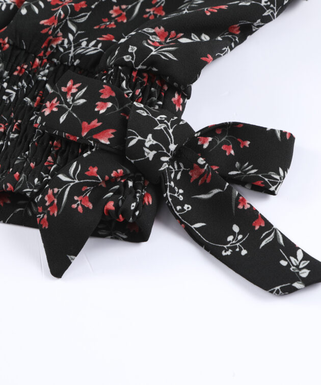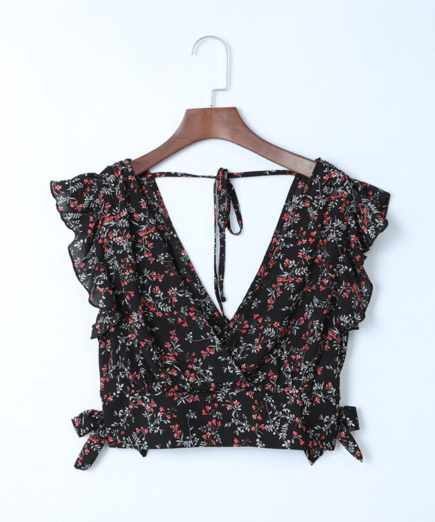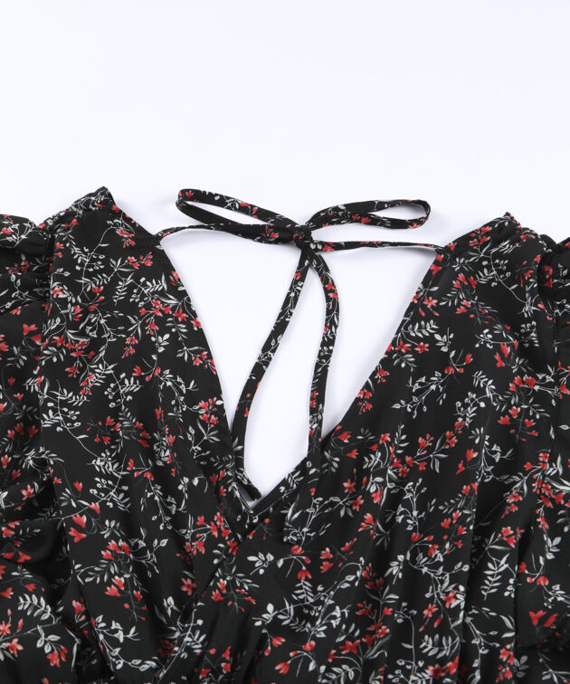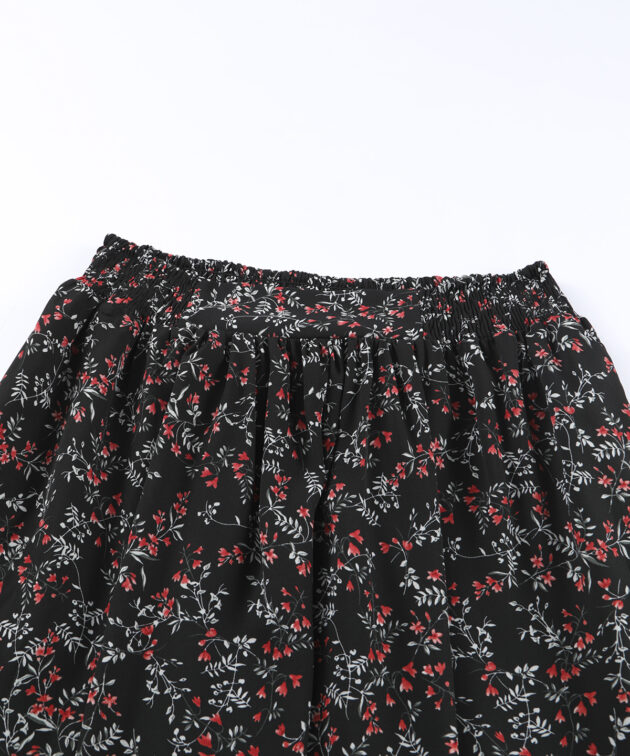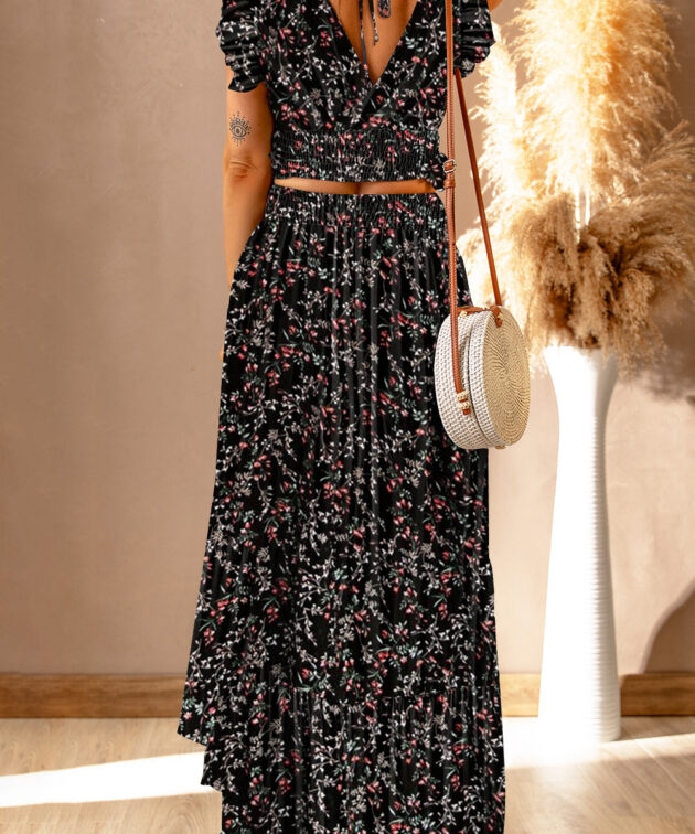 Black Multicolor Floral Ruffled Crop Top and Maxi Skirt Set