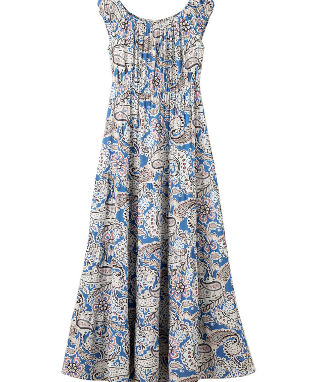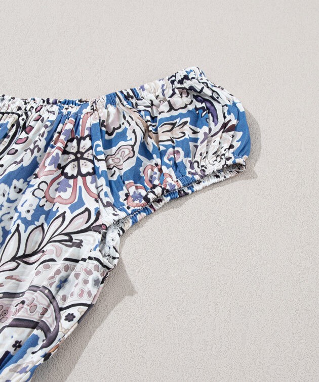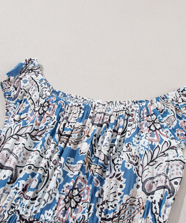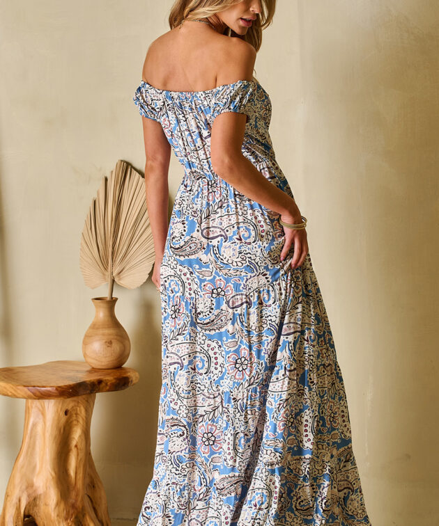 Blue Boho Paisley Print Off Shoulder Maxi Dress