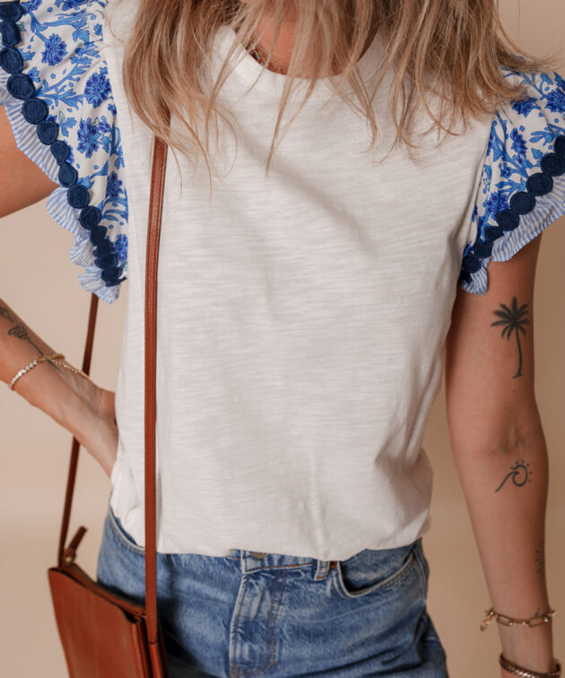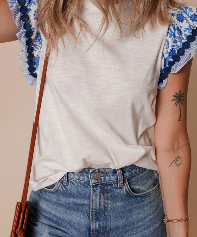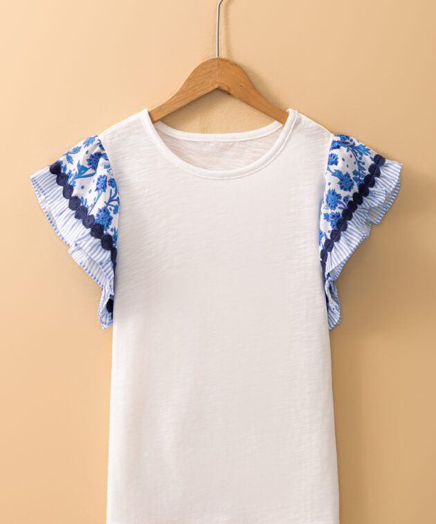 - The crew neck makes it classic while the flutter sleeves design is eye-catching.