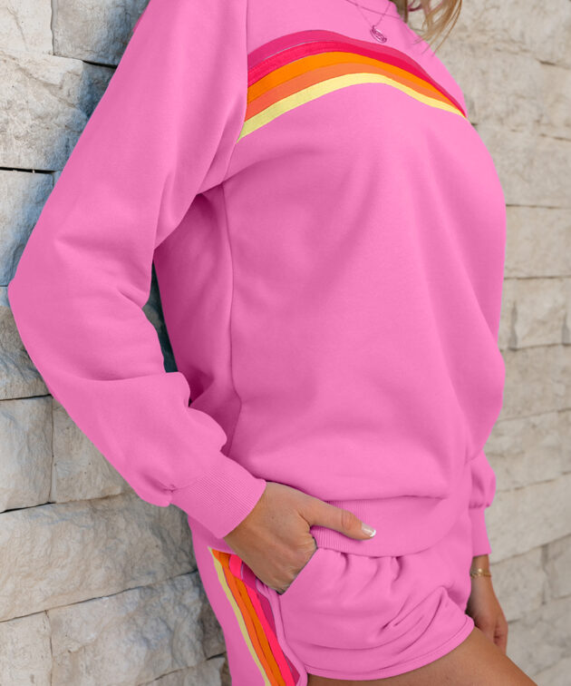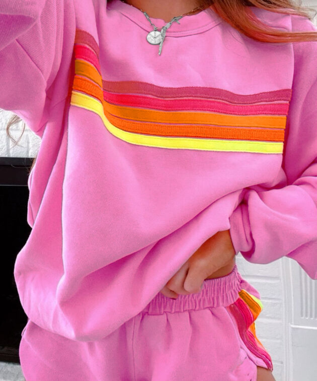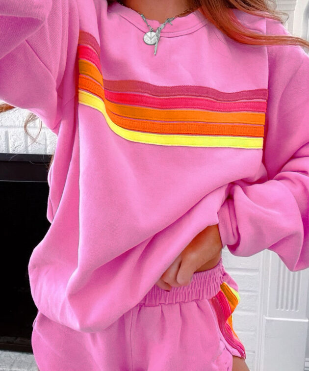 - The casual set features a stylish striped accent to get away from dull and monotony.