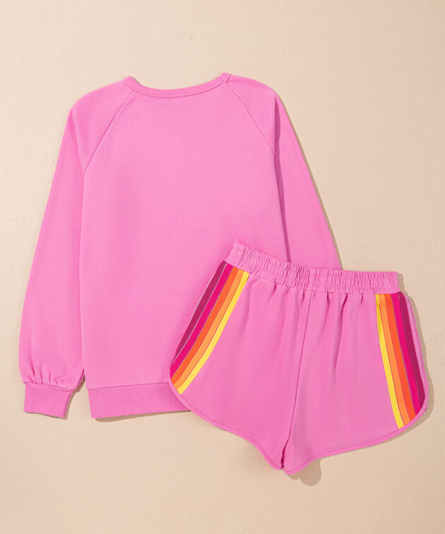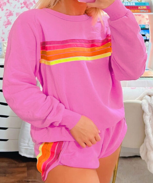 - The set comes with coordinating shorts creating a cohesive look that’s ready for warm weather or indoor lounging.