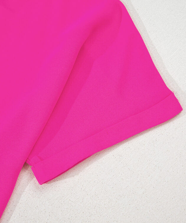 Stylish cuffed sleeves design and high low hem of the shift fit silhouette.