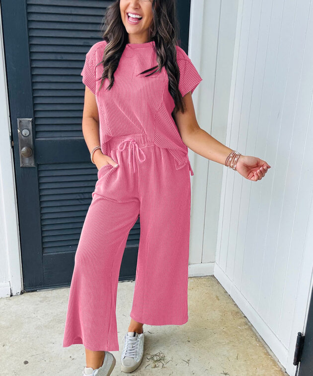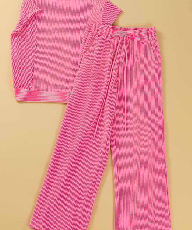 - The corded knit fabric adds texture and a cozy feel, perfect for both casual and comfortable wear.
