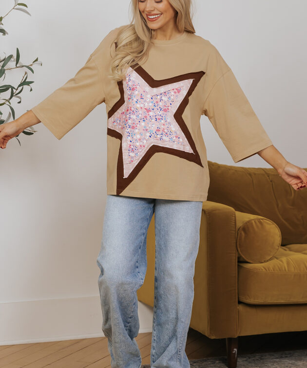 - The floral star graphic patch makes this tee fashionable and noticeable.