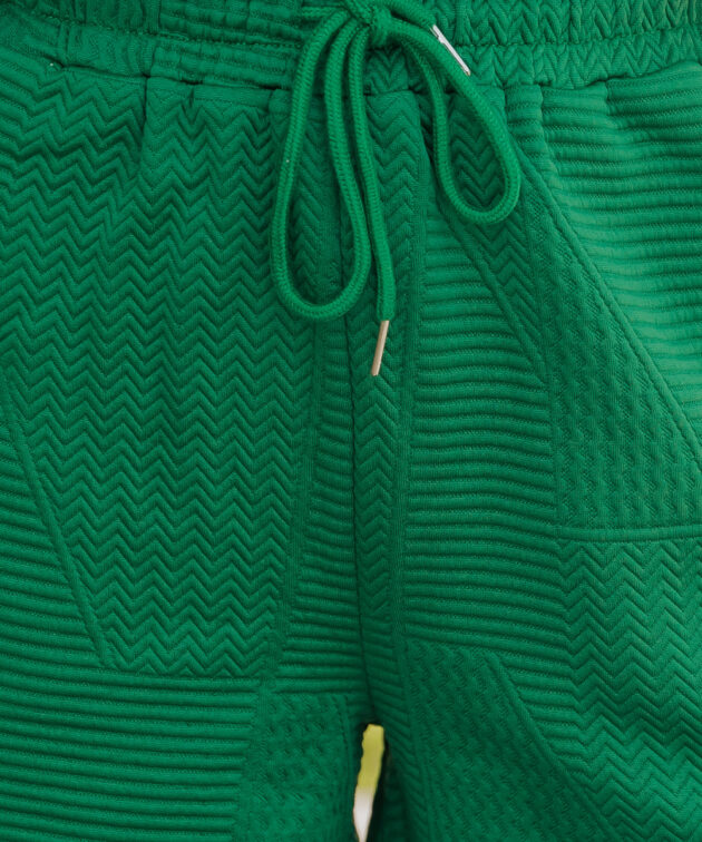 Dark Green Textured Ruffle Split Top and Drawstring Shorts