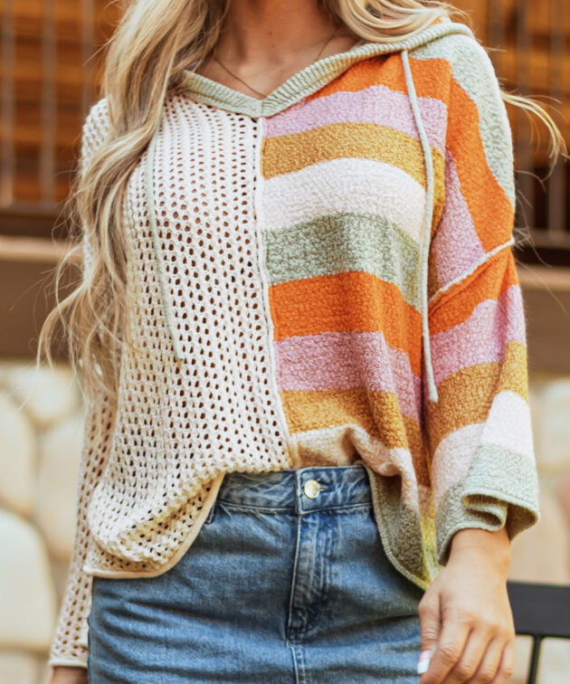 - Fall in love with this women’s sweater for its eye-catching color block.