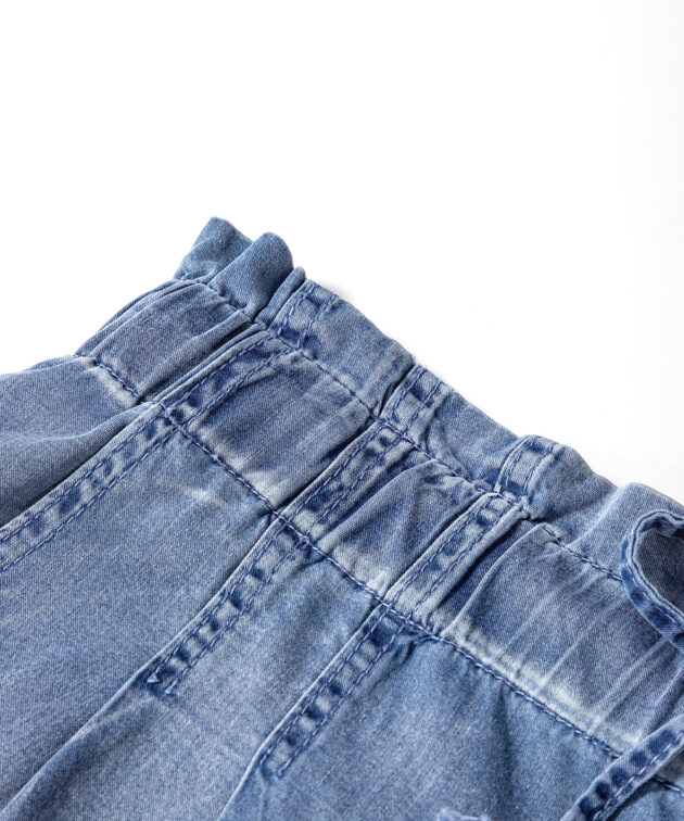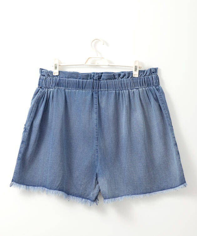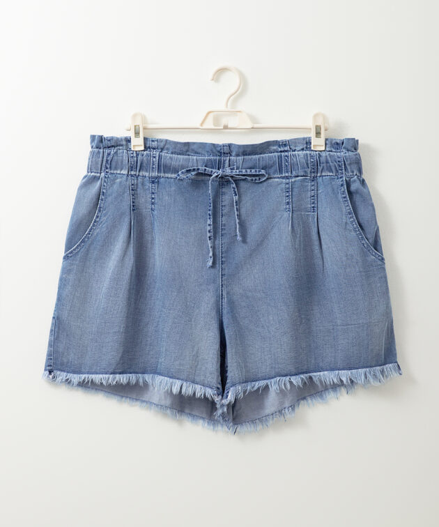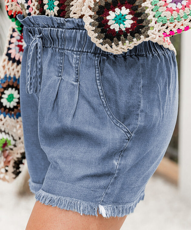 Dusk Blue Raw Hem Lace-up High Waist Plus Size Denim Shorts