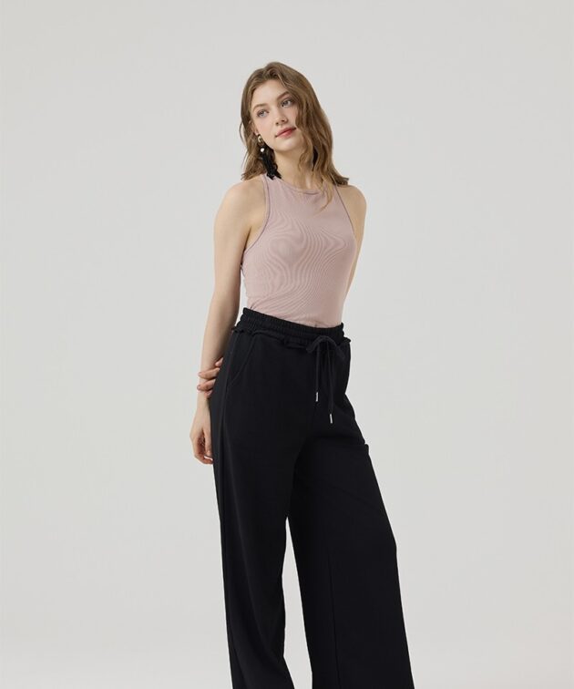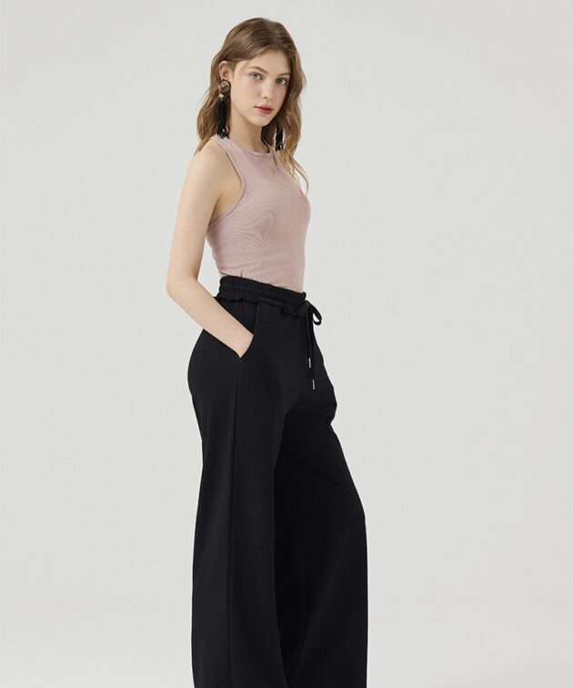 Elastic Drawstring Waistband Wide Leg Sweatpants