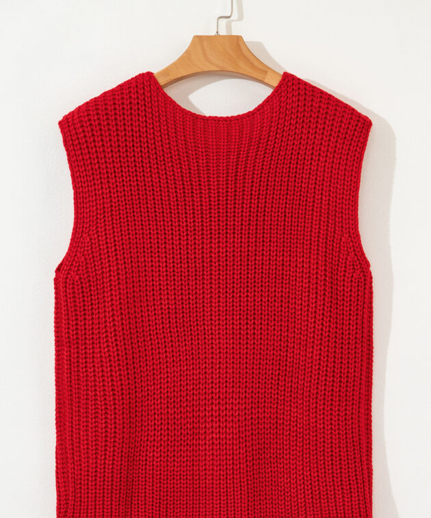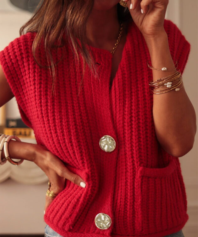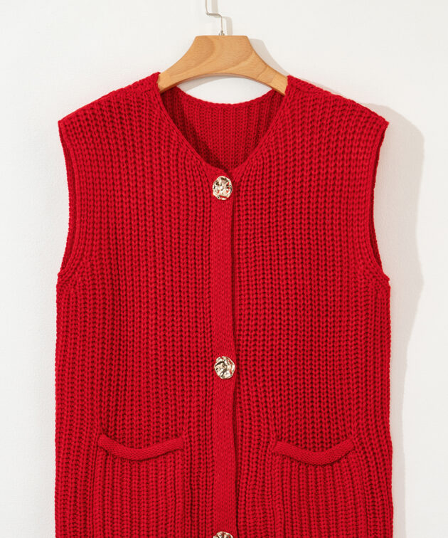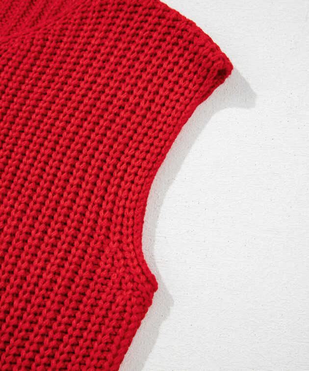 - This knitted vest adds a touch of texture and dimension to your ensemble.