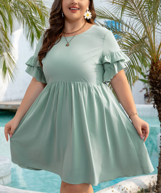 - The ruffle trim adds a feminine detail, enhancing the dress’s charm.