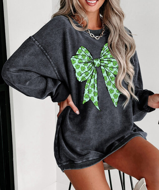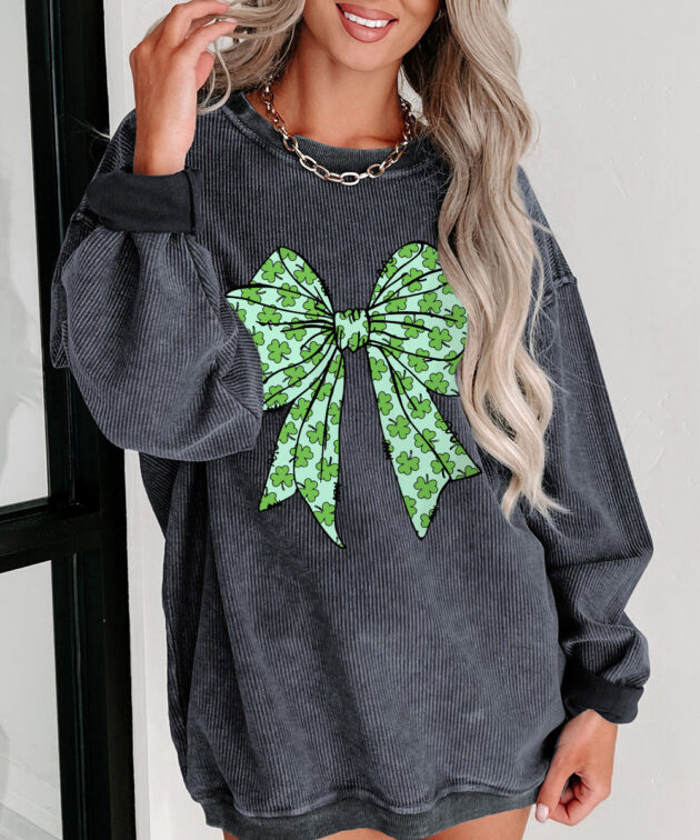 - A charming bowknot with clovers prints, perfect for the lucky day.