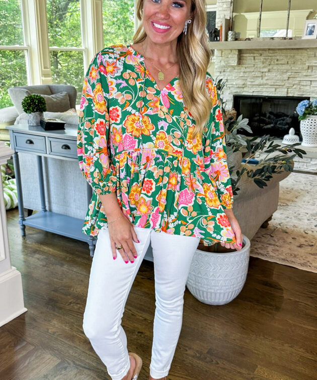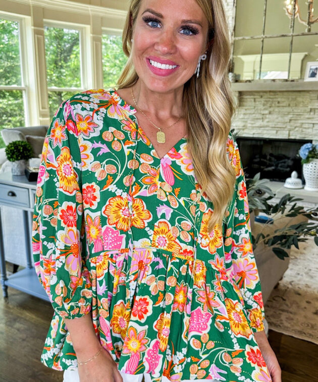 - Enchanting floral pattern gives this chic blouse for a fresh, feminine look.