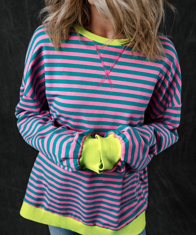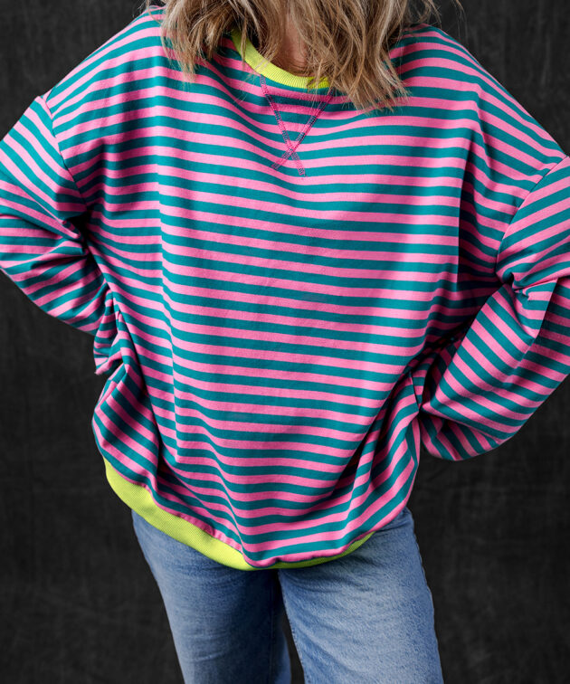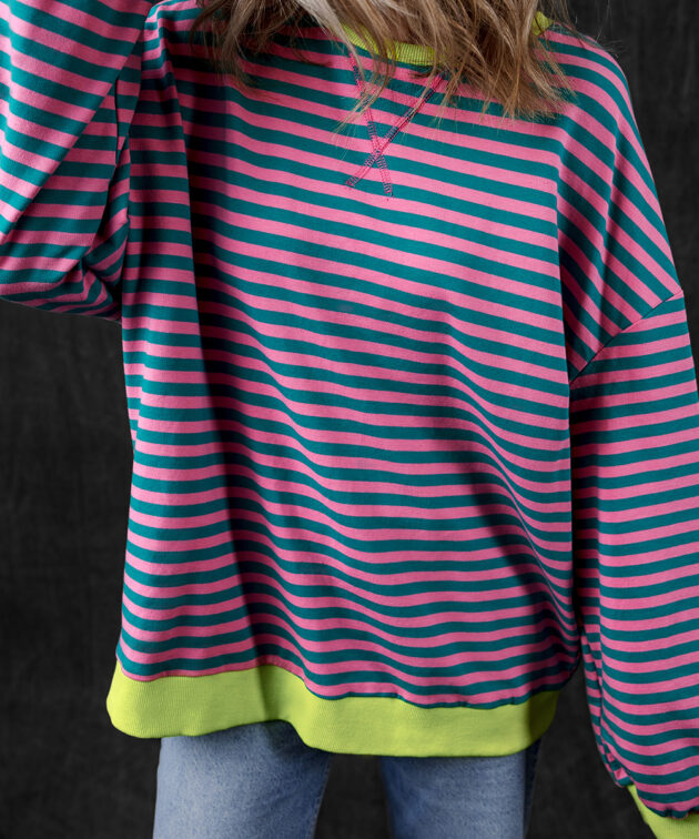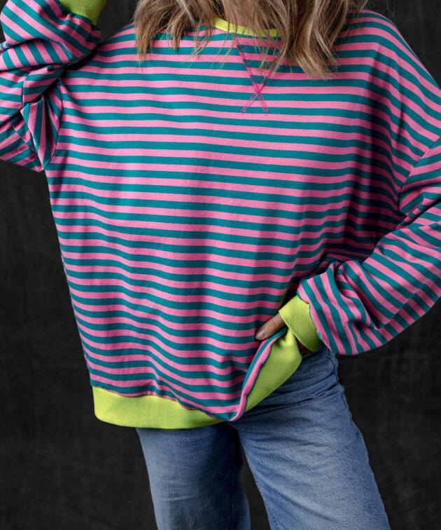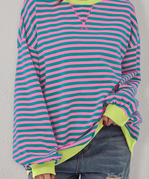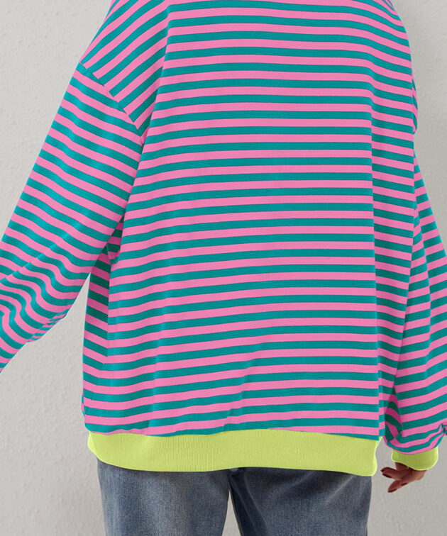 Green Stripe Oversized Contrast Trim Pullover Sweatshirt