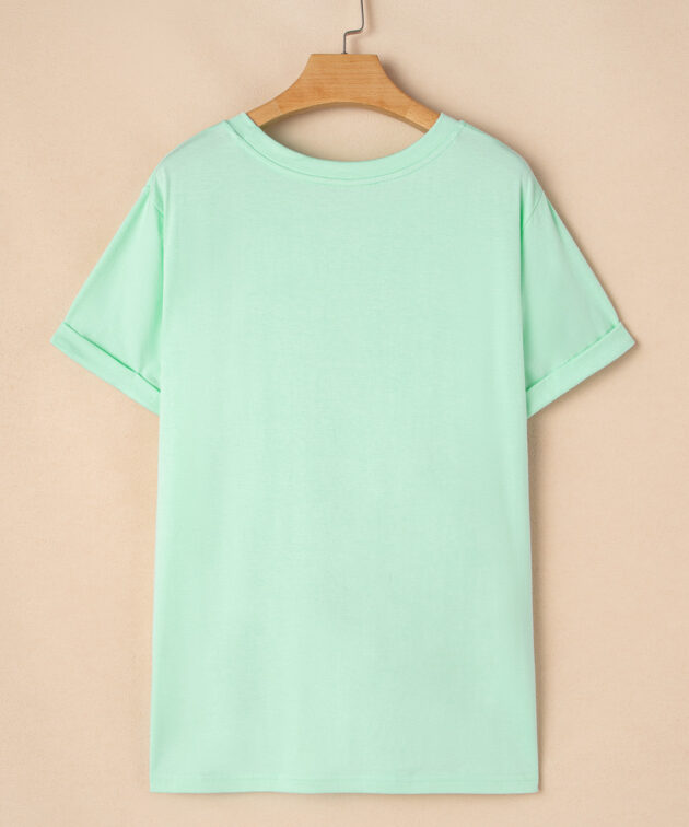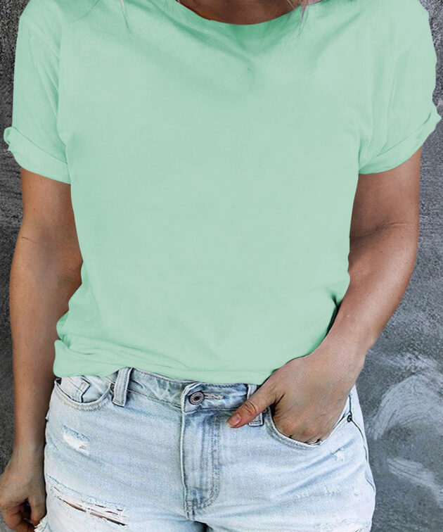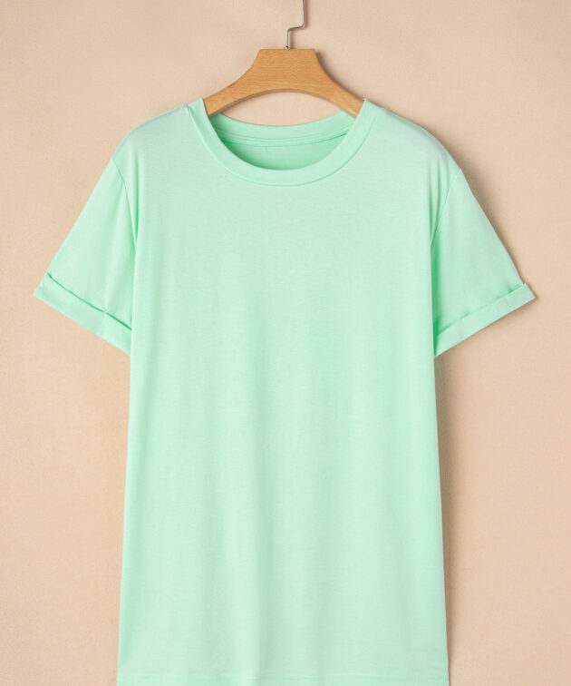 Iceland Blue Round Neck Rolled Sleeve Plus Size T-shirt