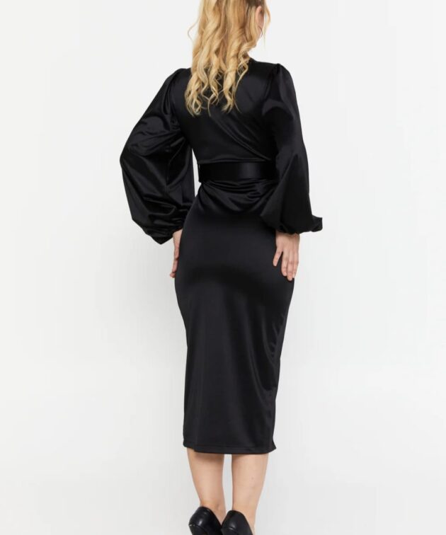 Long Sleeve Midi Satin Column Regular Evening Dress