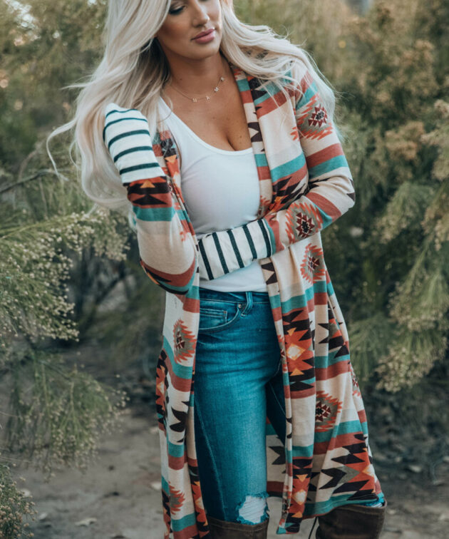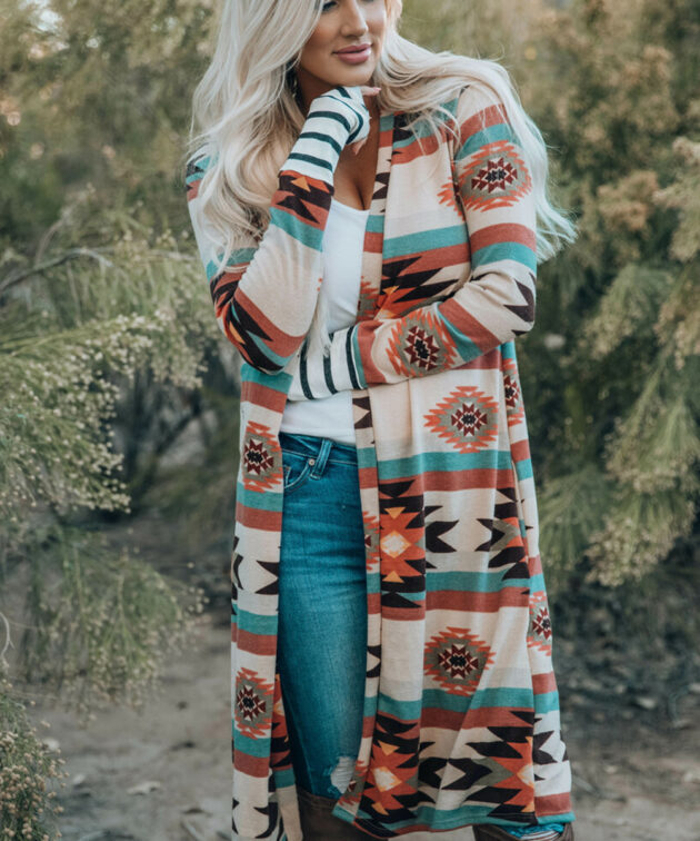 - This western print cardigan will shape your individual character style