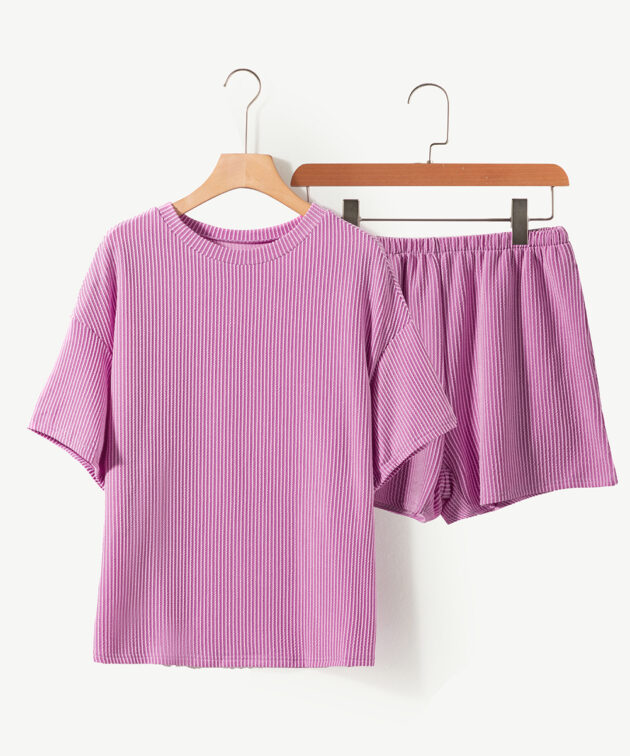 - This textured knit two-piece set include a tee and shorts