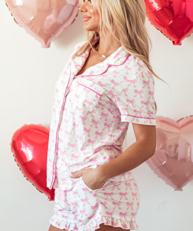 - The top is designed with short sleeves while the included shorts have ruffled edges.