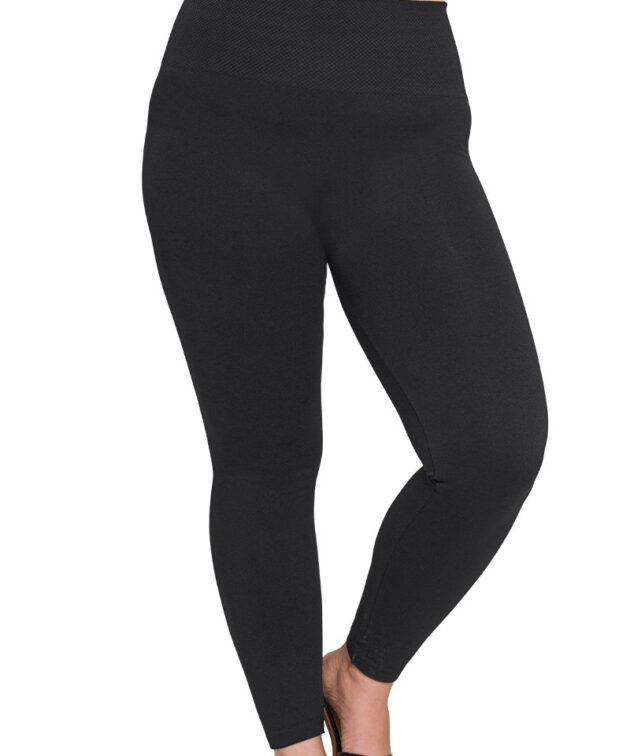 PLUS HIGH WAIST DIAMOND SHAPE BAND FLEECE LEGGINGS TOTAL WAIST: 26", WAISTBAND: 4.5", INSEAM: 25.5" approx. - MEASURED FROM 1X/2X * COLOR MAY VARY SLIGHTLY DUE TO MONITOR RESOLUTION ZENANA CHINA Fabric 90% POLYESTER 10% SPANDEX