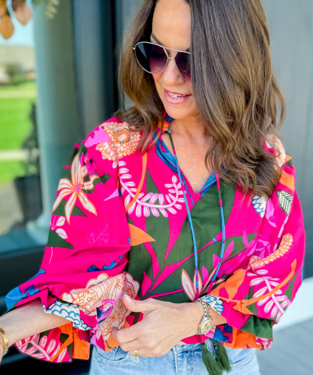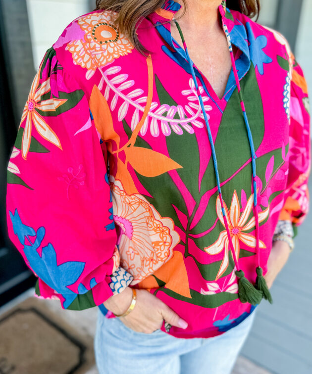 - Unleash your elegant side with our Blooming Flower Print Ruffled Puff Sleeve Blouse.