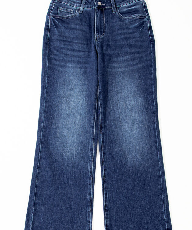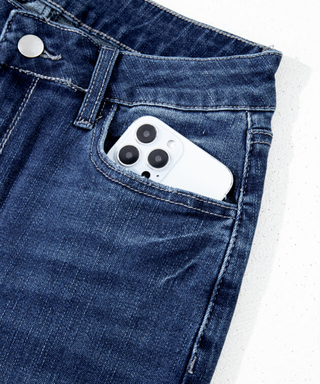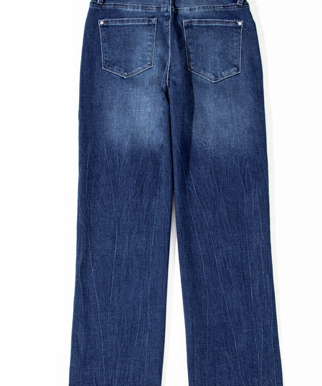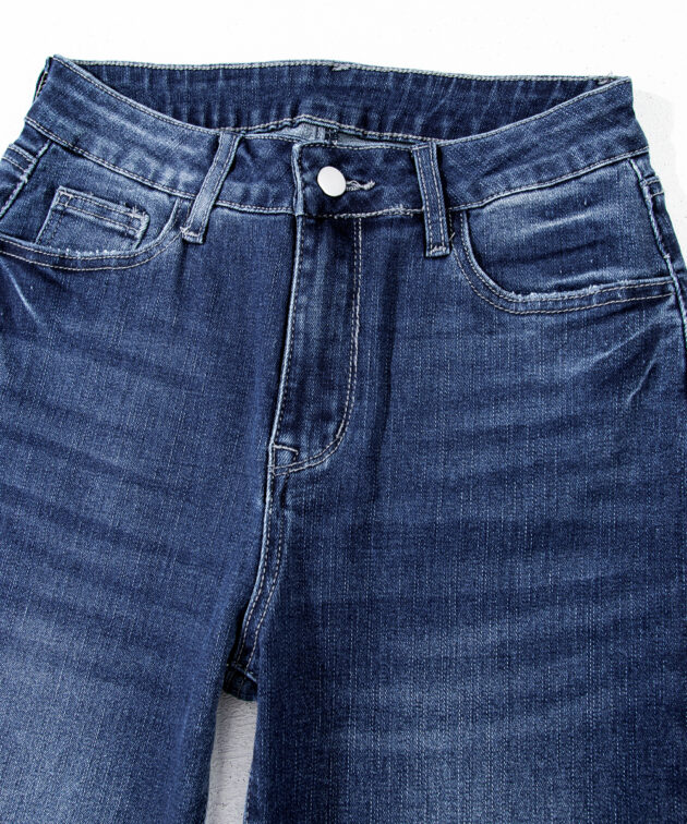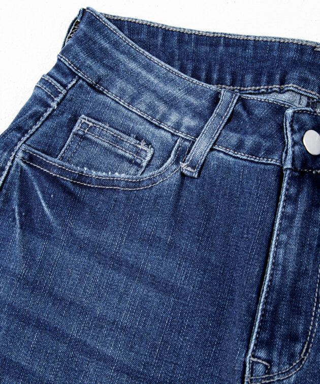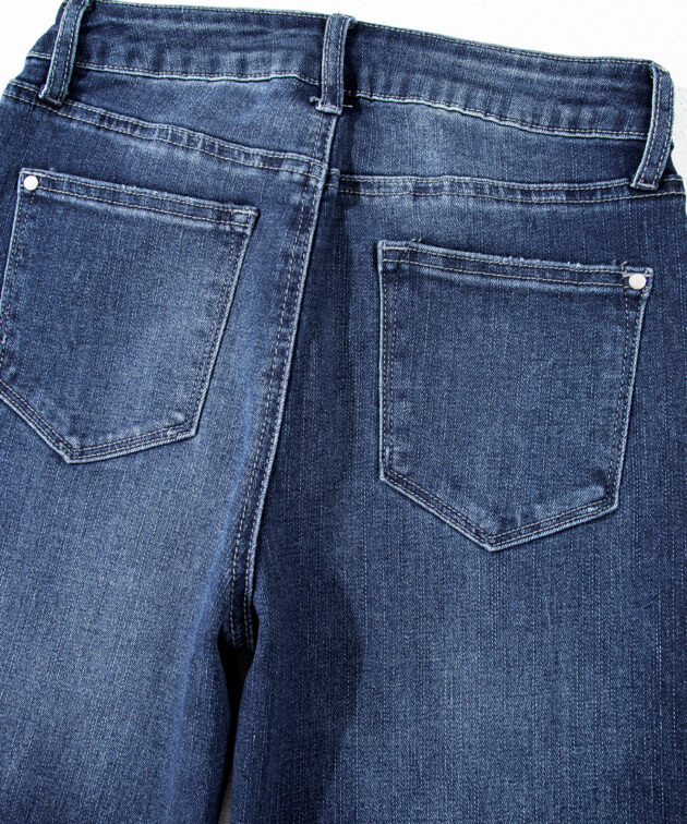 - The high waist jeans flatter your figure.