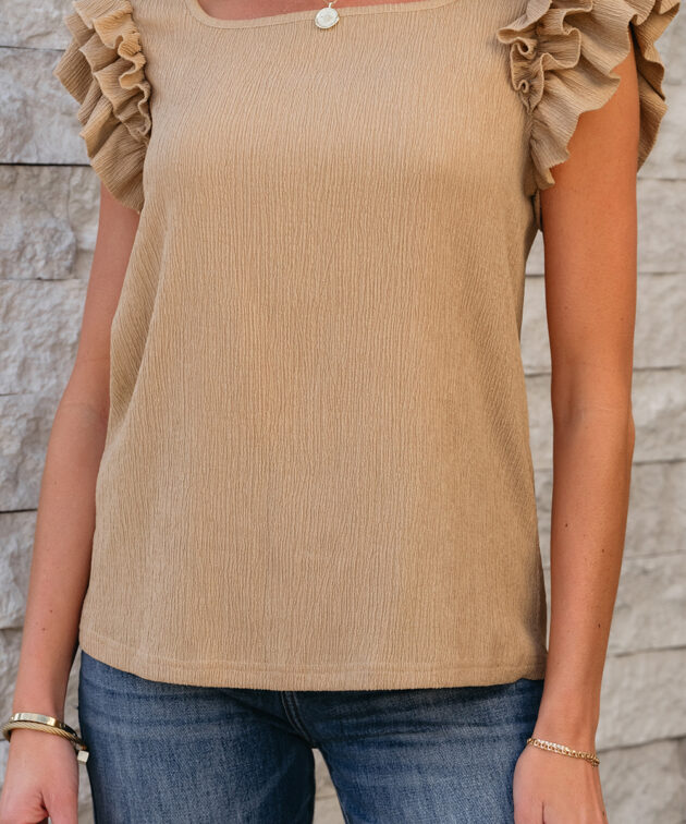 - Features a square neckline, ruffle layered sleeves and stretchy, lightweight silhouette.