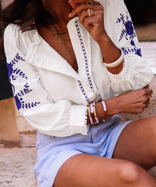 - Keep elegant and chic in this embroidered shirt